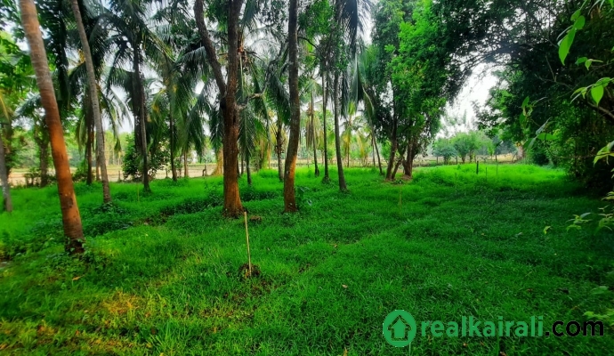 നിരവധി ഫലവൃക്ഷങ്ങളാൽ സമൃദ്ധമായ ഈ പ്ലോട്ടിൽ 40 തെങ്ങുകൾ, മാവ്, പ്ലാവ്, തേക്ക്, ഞാവൽ തുടങ്ങിയവയുണ്ട്. കൂടാതെ സ്പ്രിംഗ്ലർ ജലസേചന സൗകര്യവും ഇവിടെ ഒരുക്കിയിട്ടുണ്ട്. റോഡ് സൈഡിൽ തന്നെയുള്ള ഈ വസ്തുവിൽ വൈദ്യുതി കണക്ഷനും സ്വന്തമായി കിണർ സൗകര്യവും ലഭ്യമാണ്. കൃഷിക്കും വീട് നിർമ്മാണത്തിനും ഒരുപോലെ അനുയോജ്യമായ ഈ സ്ഥലത്തിന് സെന്റിന് 1.25 ലക്ഷം രൂപയാണ് പ്രതീക്ഷിക്കുന്നത്.
